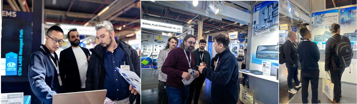 展会期间,研凌重点展出三大产品线:无风扇静音工控机以全铝强固结构与宽温特性应对严苛工业场景;工业平板电脑系列支持多点触控与灵活扩展,适配人机交互及产线管理;嵌入式BOX主机则为边缘计算与机器视觉提供紧凑高效算力。现场动态演示直观稳定,吸引多国专业观众驻足探讨。