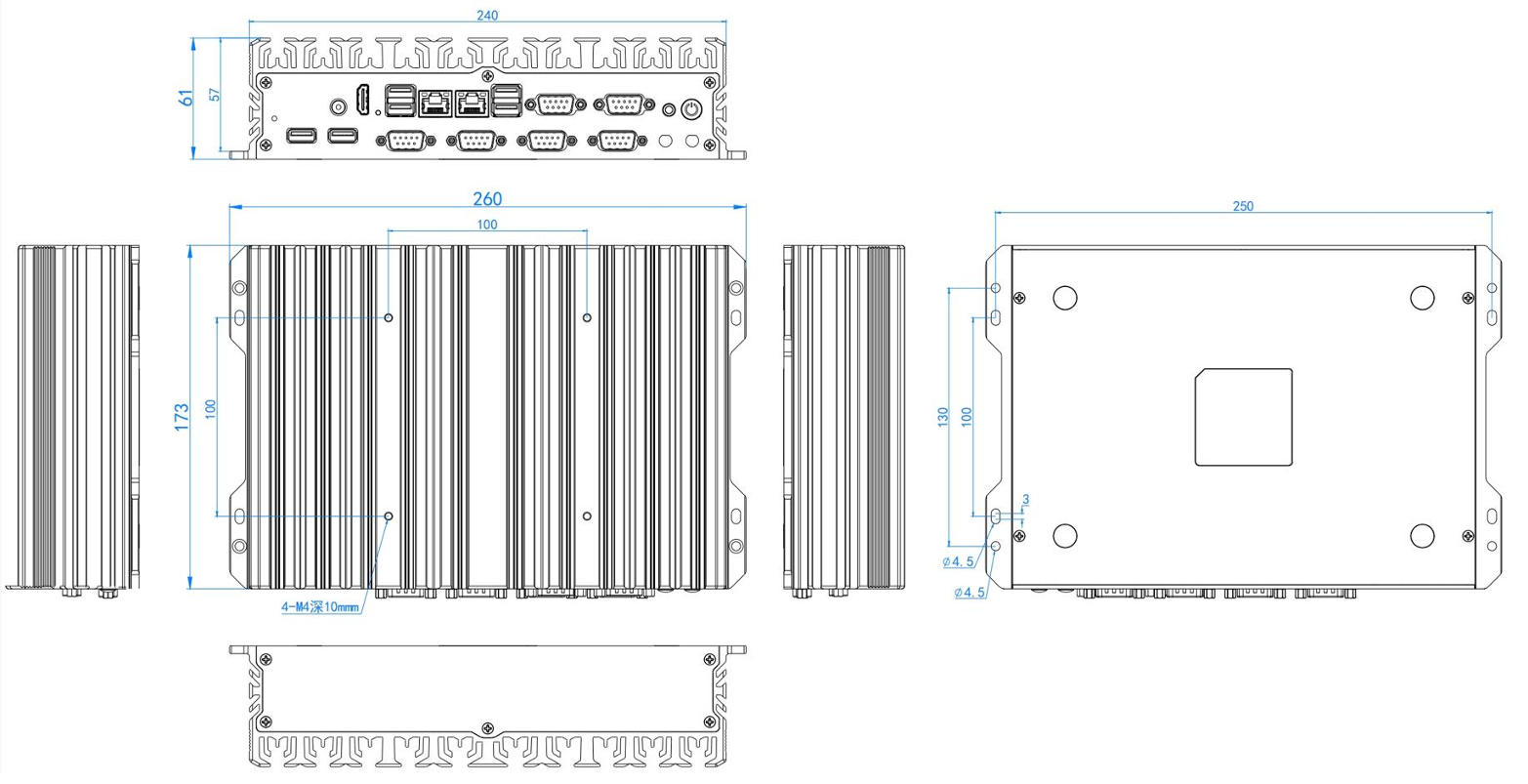 | 6 个COM口(COM1、COM2可选RS232/485),1个音频二合一接口,1个开关按键 | |