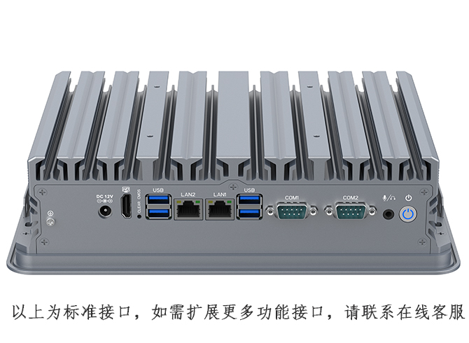 | I/O 端口 | 1个HDMI接口,2个串口(COM1、2可选RS232/485,可定制6个串口),1个开关按键, |