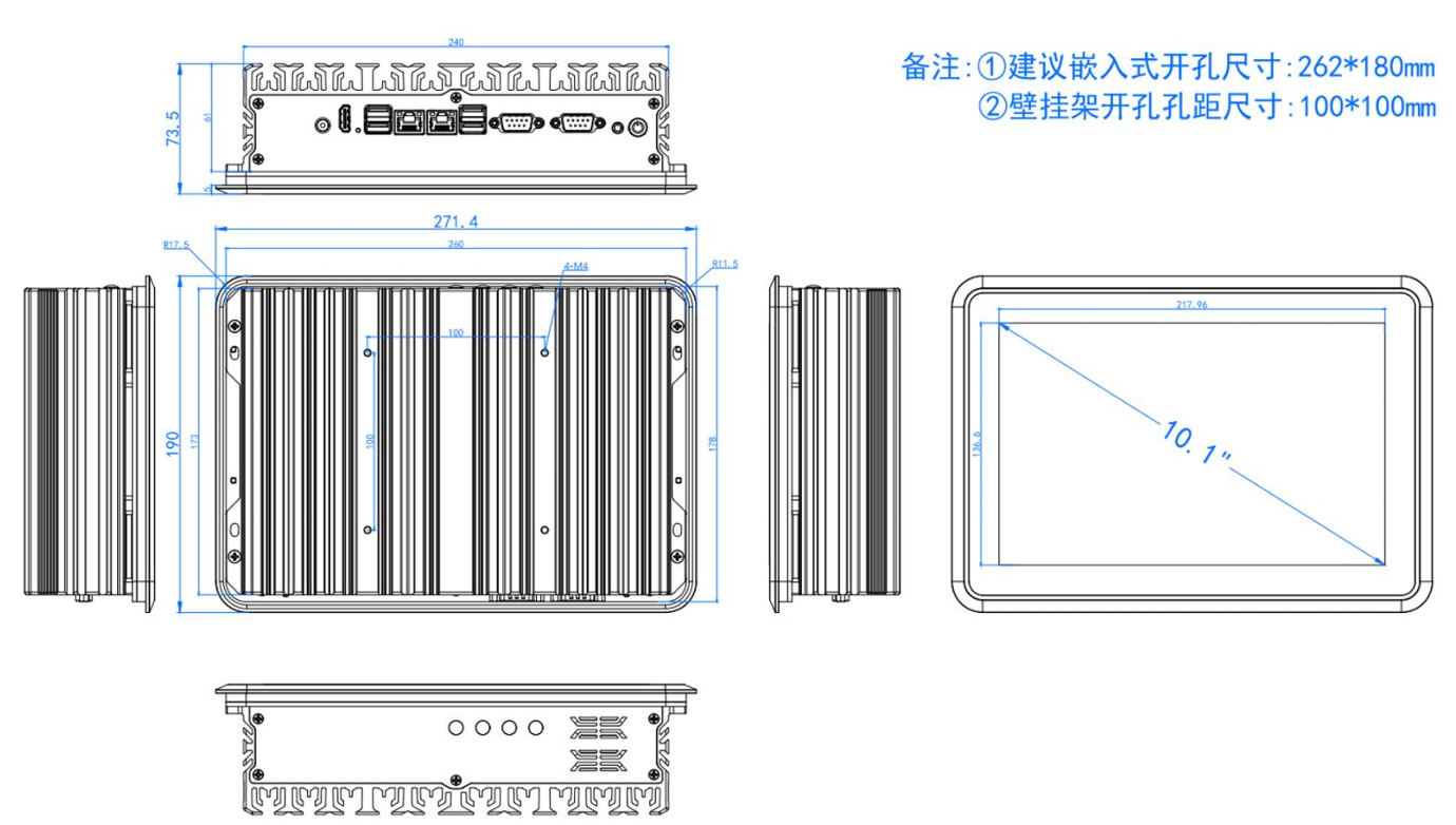 | 液晶屏参数 | 屏幕尺寸:10.1寸TFT-LCD;屏幕亮度:430 cd/m2;可视角度:全视角 |